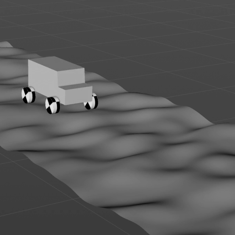 I spent some time rigging the vehicle and experimenting with its suspension physics. This helps ground the car within the environment and adds a sense of visual satisfaction.